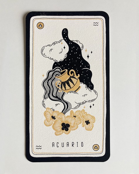 Làmina serigrafiada dels 12 signes zoodiacals. A dues cares, 11x22cm, impresa a mà a dos tintes en paper 100% cotó 290g.